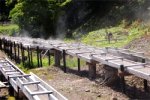 木の樋は合計で約200メートルの長さがあり、この間に自然 冷却されて加水することなく源泉本来の「湯の良さ」を 味わうことができます。 |