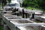 源泉から木の樋で流すことにより温度を適温に下げて 浴室に注いでいます。 ※立入及び撮影禁止区域です。 (引湯試験の際に撮影しています) |